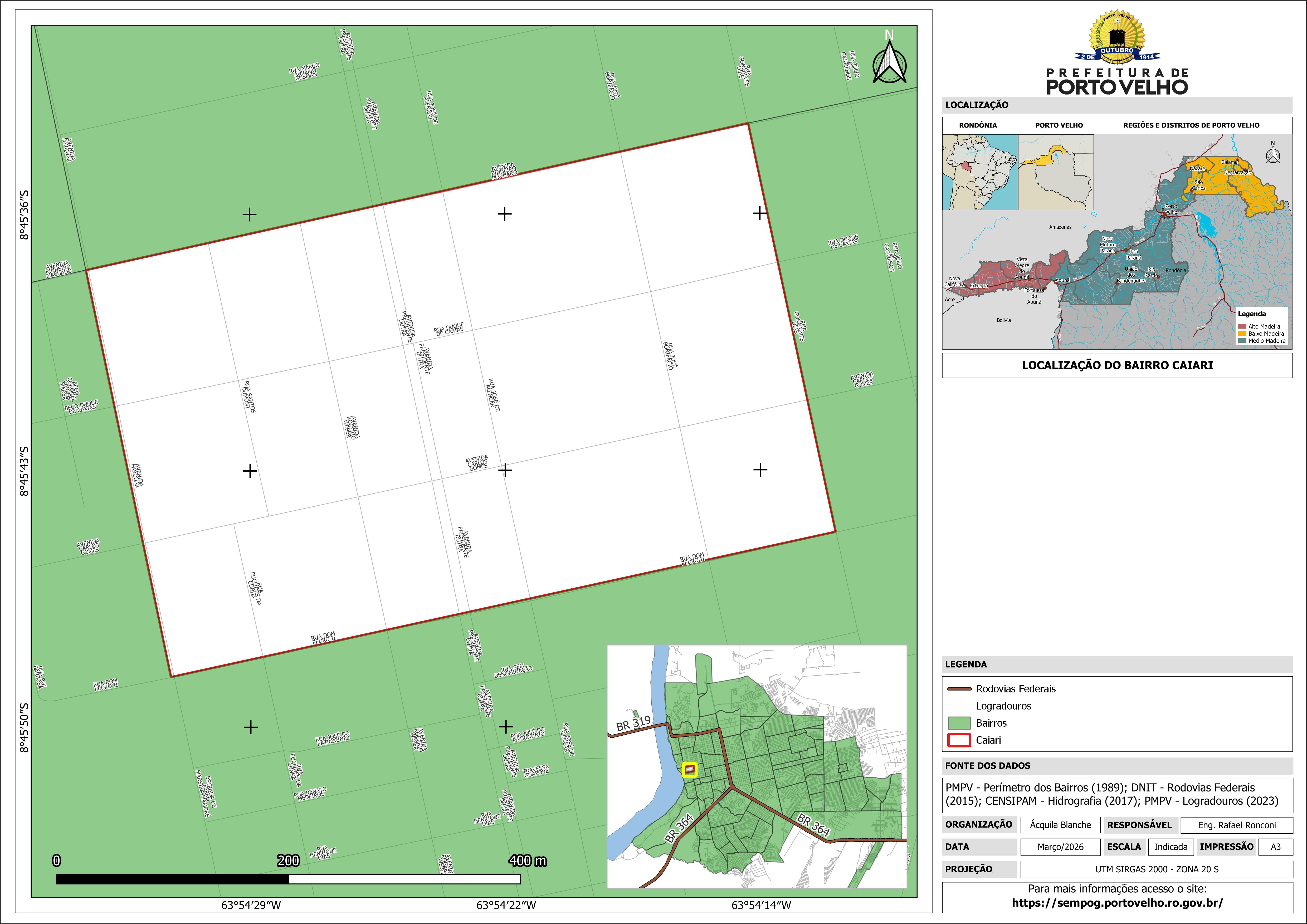 O Bairro Caiari está delimitado pelos bairros Arigolândia, Olaria, São Cristóvão e Centro. O bairro está