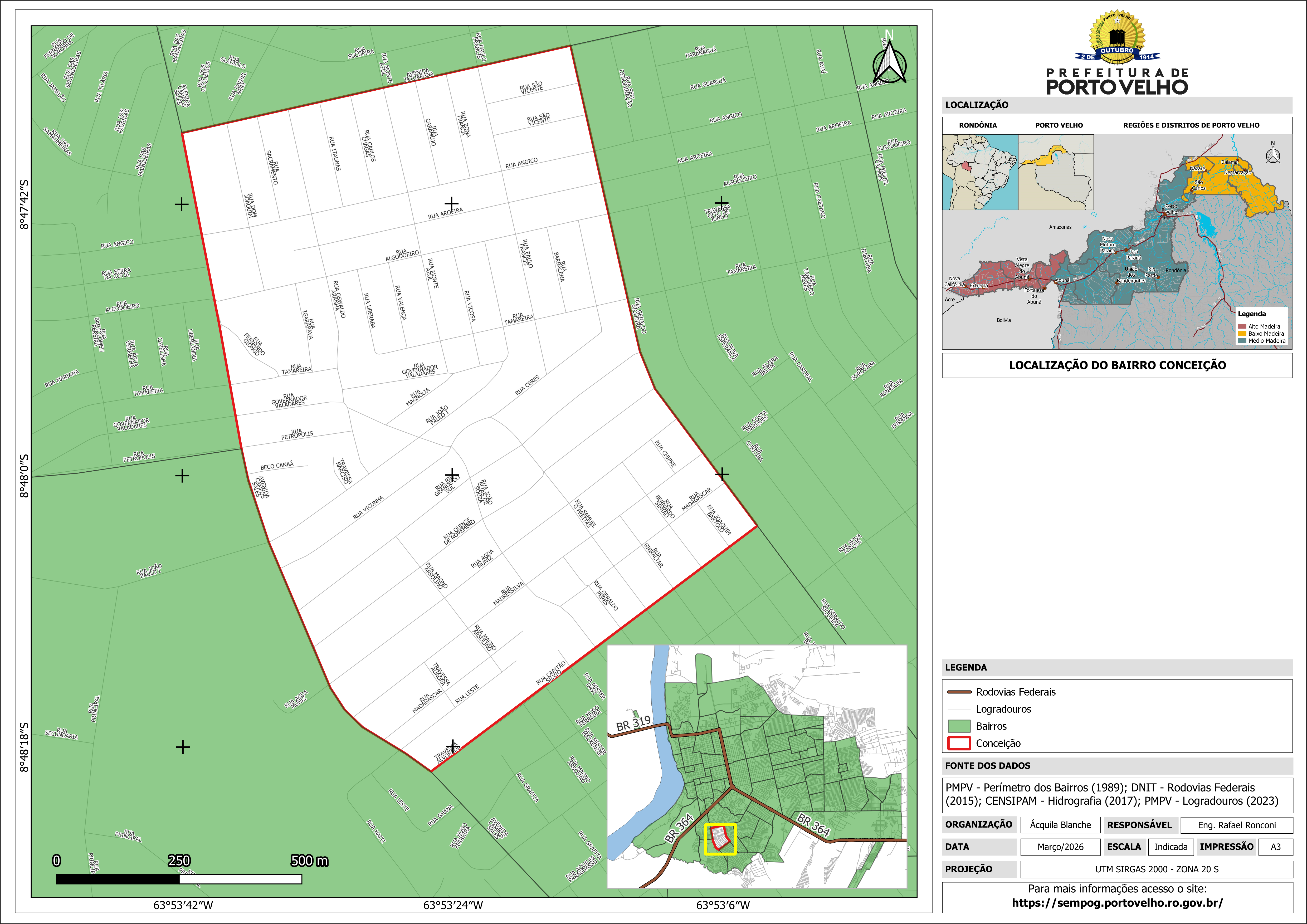 O bairro Conceição é delimitado pelos Bairros Cidade do Lobo,