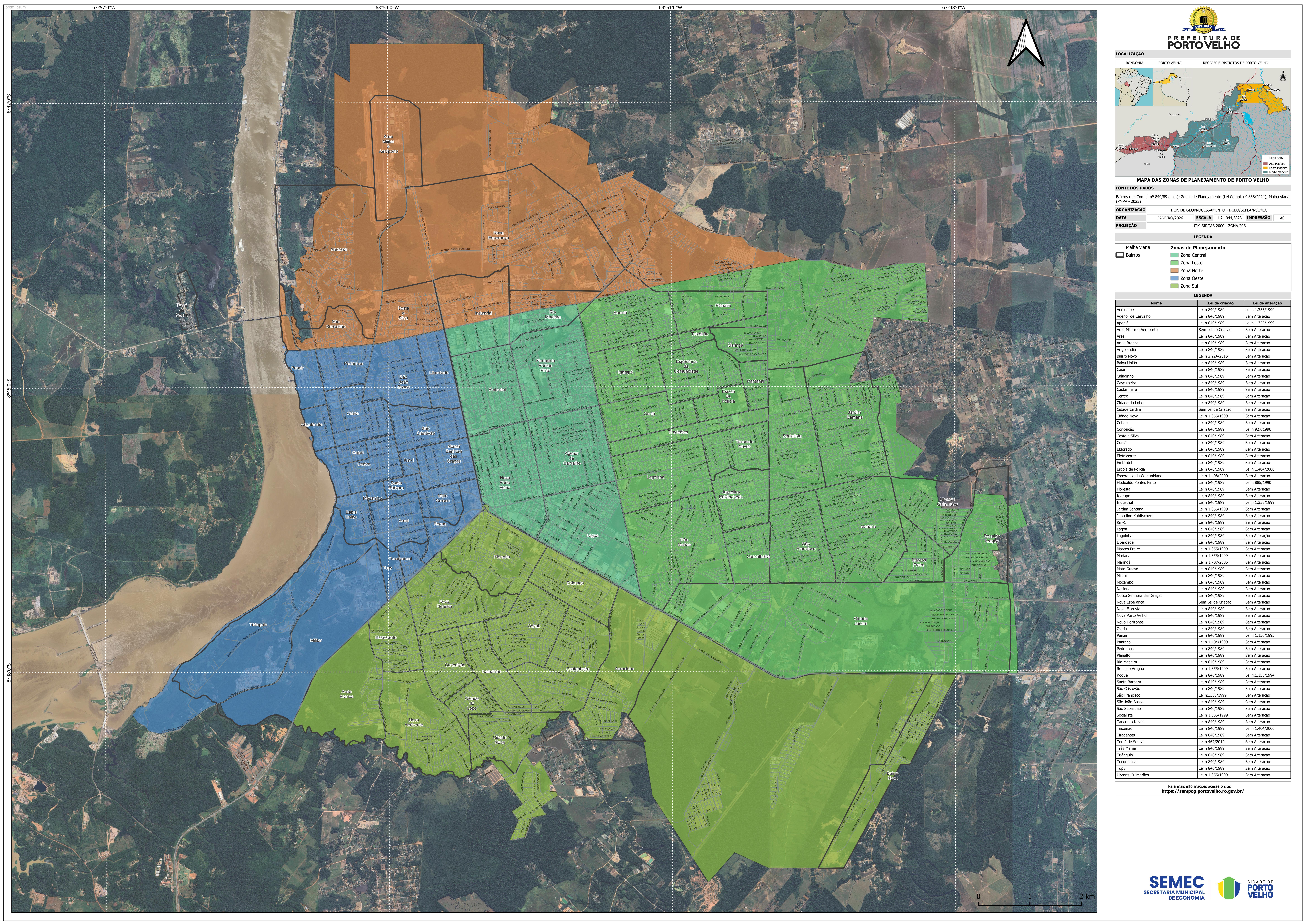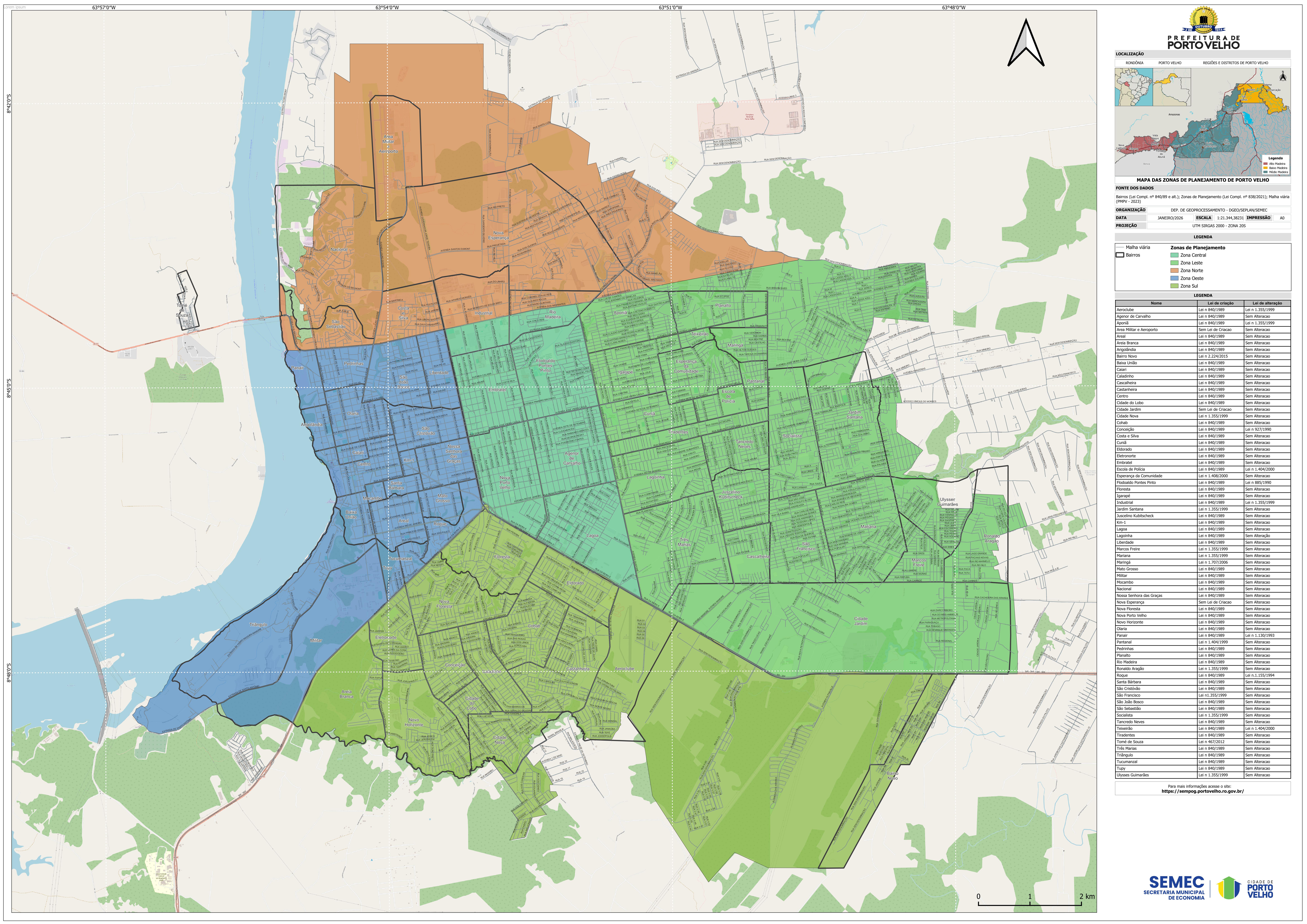 Este mapa contém as Zonas de Planejamento do Município de Porto